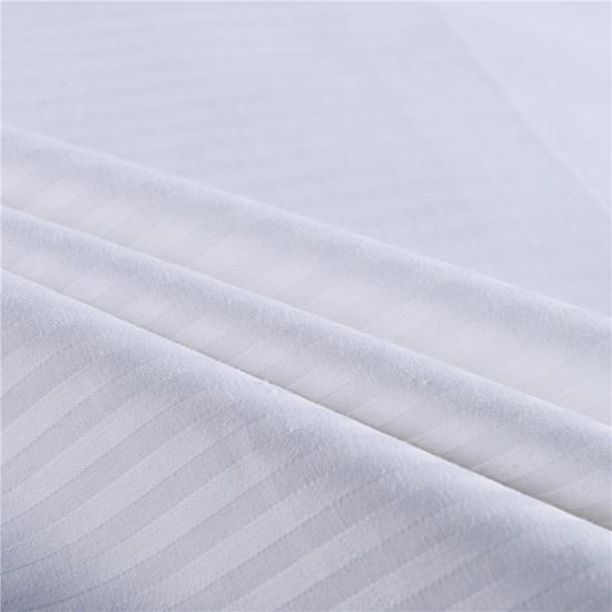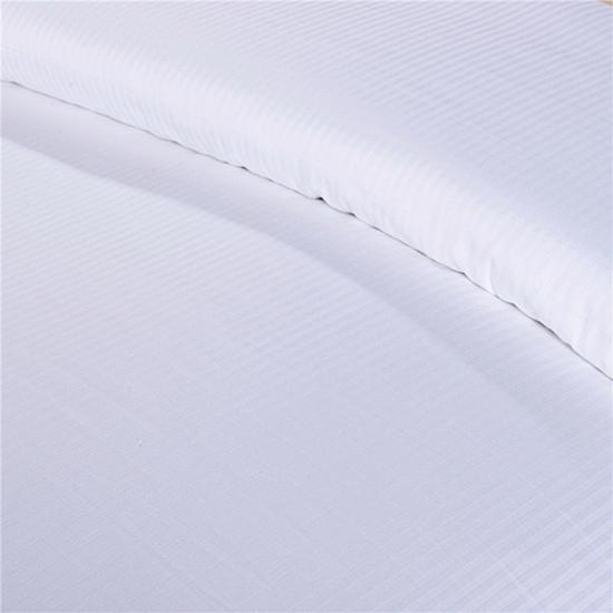 طقم فراش قطني بوليستر مخطط أبيض. جودة القطن العالية مستمدة أساسًا من الابتكار والتطوير التكنولوجي. حرفيته المميزة تجعل ملمسه أكثر نعومةً وطبيعيةً.