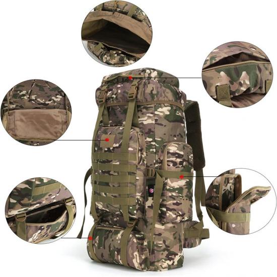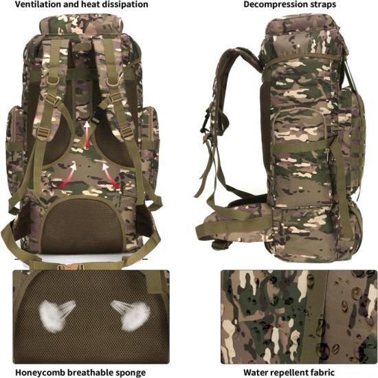 تم تصنيع حقيبة الظهر ذات السعة الكبيرة 70 لترًا هذه من نسيج أكسفورد 900D، وهي مادة ليست مقاومة للماء فحسب،