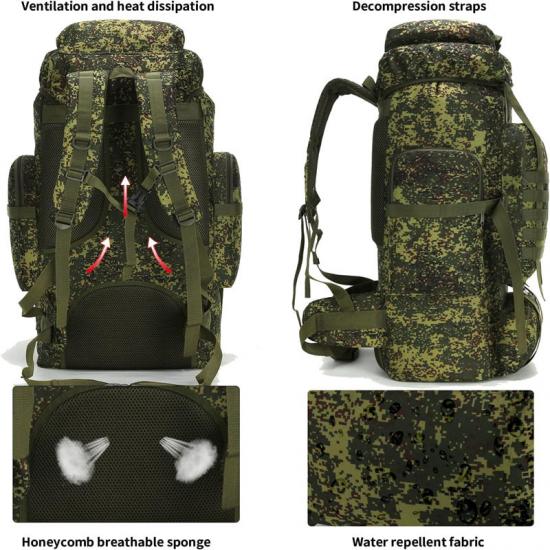 حقيبة الظهر العسكرية القابلة للتنفس هذه بسعة 70 لترًا مصنوعة من نسيج أكسفورد 900D، وهو ليس مقاومًا للماء فحسب، بل قابل للتمزيق أيضًا