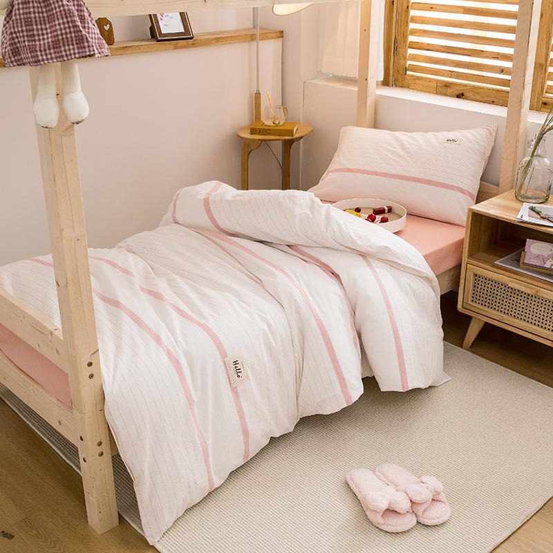 طقم سرير من 6 قطع مصنوع من قماش بوليستر سادة. فجوات الخطوط متناسقة في الحجم و الشكل، لا