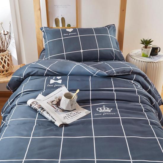 1 غطاء وسادة وملاءة مسطحة وغطاء لحاف.