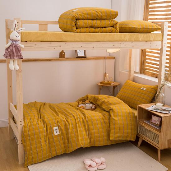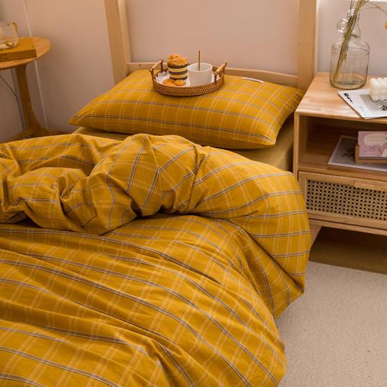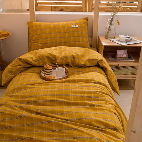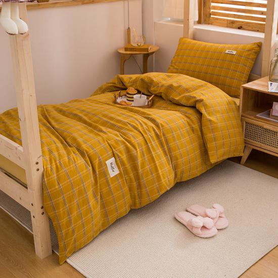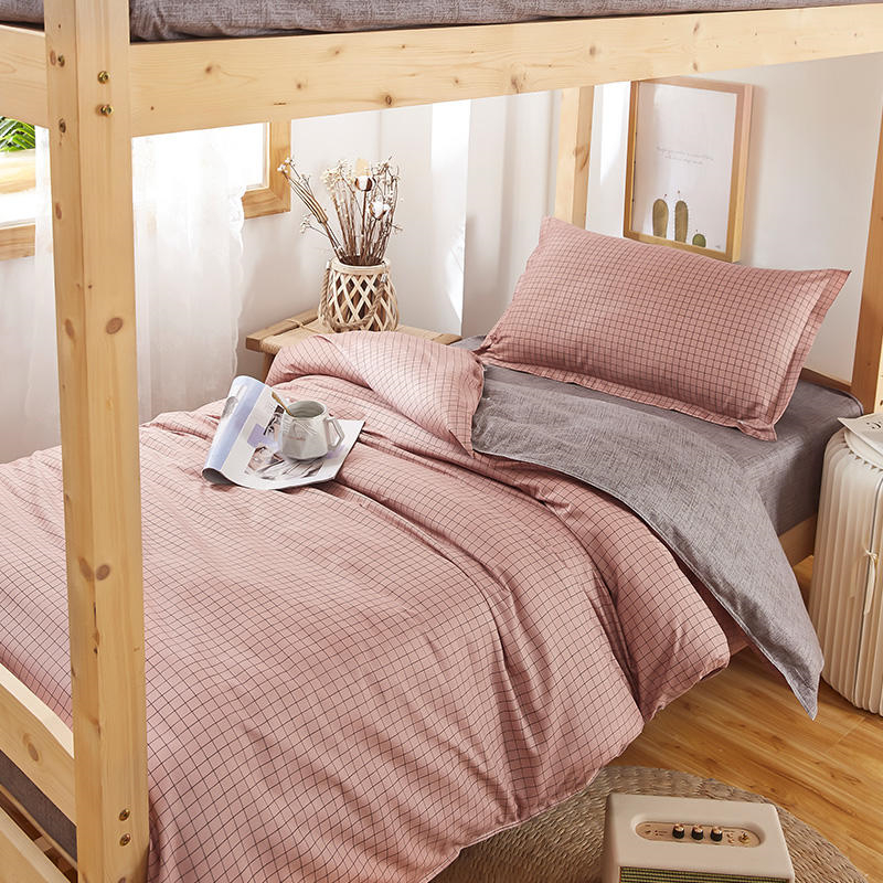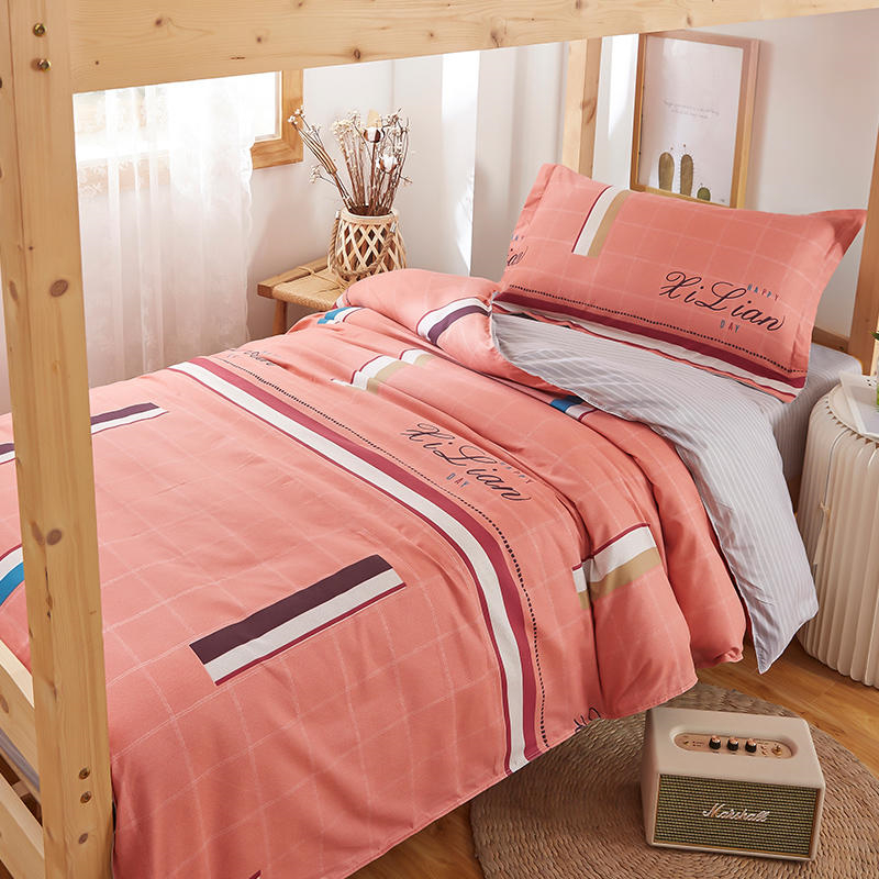طقم أغطية لحاف السرير مصنوع من قماش بوليستر سادة. فجوات الخطوط متناسقة في الحجم و