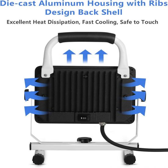 صُنع غلاف مصباح الطوارئ للإغاثة من الكوارث من الألمنيوم المصبوب، مما يُسهّل تبديد الحرارة ويعزز سلامة دورانه 360 درجة. كما تضمن عدسة الزجاج المقوى وتصميم المفتاح المُحكم إغلاق المصباح بإحكام، مما يمنع دخول الغبار والماء بفعالية. أما بالنسبة للمظهر، فإن العمود الأبيض المُعتّق يُضفي على مصباح الطوارئ مظهرًا جميلًا ومتينًا، ويزيد من متانته.