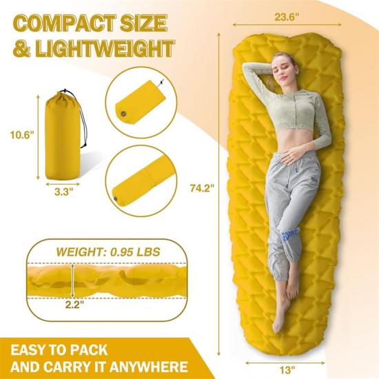 الحجم والقدرة على النقل: وسادة نوم قابلة للنفخ مقاومة للتمزق من الشركة المصنعة الصينية مقاس 74 × 23.6 × 2.2 بوصة/
