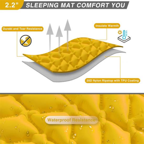 أ: يتم تصنيع وسادة النوم القابلة للنفخ ذات المتانة العالية من الشركة المصنعة في الصين باستخدام عملية ختم فريدة لضمان