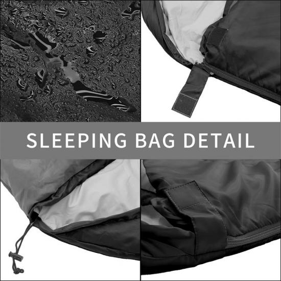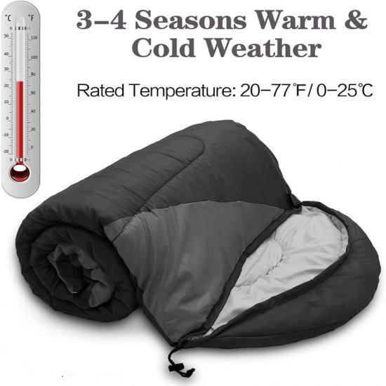 كيس النوم الخاص بنا للإغاثة من الكوارث مناسب لثلاثة أو أربعة فصول، ومُصمم لتحمل درجات حرارة تتراوح بين 5 و25 درجة مئوية، مما يوفر لك بيئة نوم مريحة سواءً كنت في الخارج في ليلة باردة أو في الهواء الطلق. بالإضافة إلى ذلك، يتميز كيس النوم هذا بأنه مقاوم للماء، مما يمنع البلل ويحافظ على دفئك.