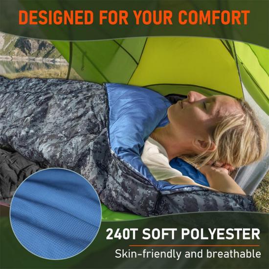 ج: حقيبة النوم الدافئة بأسعار مخفضة مصنوعة من بطانة البوليستر 210T ومواد أخرى عالية الجودة.