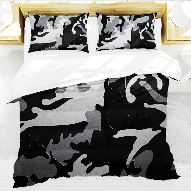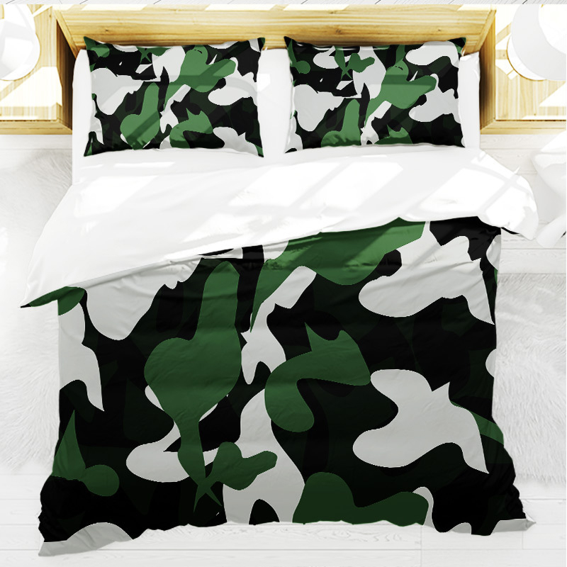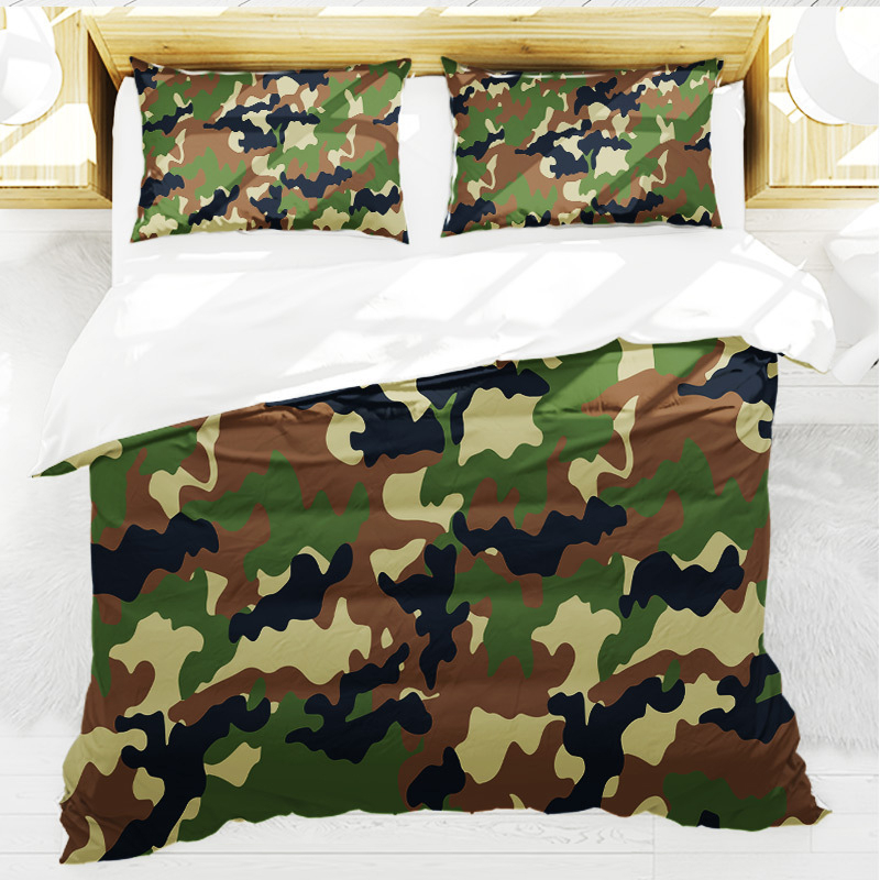 ال غطاء لحاف سرير بتصميم عسكري مموه السحاب أكثر موثوقية ومتانة. يُغلق غطاء اللحاف بسرعة وسهولة أكبر من الزر العادي، مما يُجنّب سقوط اللحاف من غطاء اللحاف.