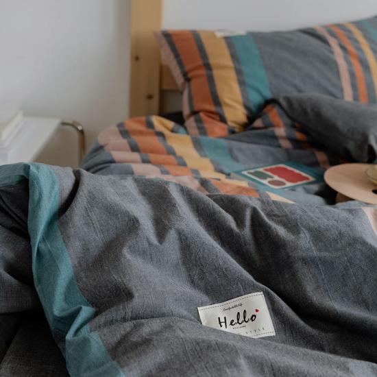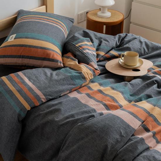 متوفر طقم غطاء لحاف ناعم قابل للتنفس من القطن المغسول، طقم فراش