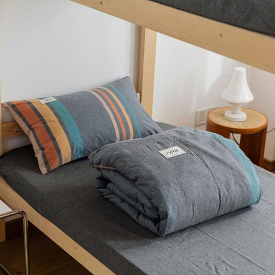 طقم ملاءات السرير وغطاء اللحاف يكون مصنوع من قماش بوليستر سادة. فجوات الخطوط متناسقة في الحجم و