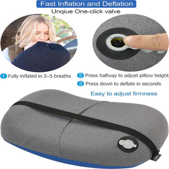 صمام مريح في اتجاه واحد: صمام مدخل الهواء المدمج لوسائد الزلازل القابلة للنفخ مُجهّز بنابض يُغلق تلقائيًا عند النفخ. ما عليك سوى نفخ الوسادة بضغطة زر، وستمتلئ خلال 3-5 أنفاس. اضغط الزر مرة أخرى لتفريغ الهواء بسرعة في ثوانٍ معدودة. يؤدي الضغط برفق إلى إطلاق الهواء تدريجيًا إلى مستوى الصلابة أو النعومة المطلوب، مما يُسهّل على المستخدم ضبط مستوى الراحة الأمثل.