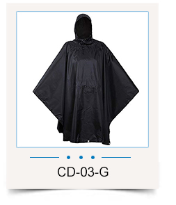 ج: يتكون معطف المطر من البوليستر عالي الكثافة 210T المقاوم للتمزق وقماش مطلي بالبولي يوريثين.