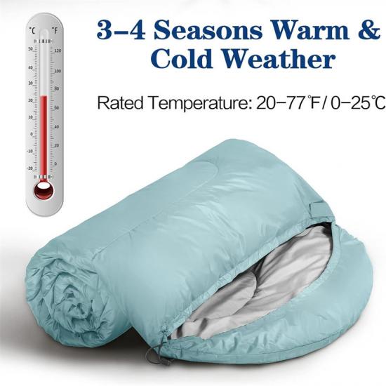 يمكن سحب السحابين الأيمن والأيسر لكيس النوم القابل للتهوية في آنٍ واحد، مما يجعله كيس نوم مزدوجًا. بالإضافة إلى ذلك، يمكن فتح الجزء السفلي من كيس النوم المصنوع من البوليستر بوزن 2 كجم، مما يجعله جيد التهوية وغير خانق، كما أنه سهل الحركة للتعامل مع مختلف الظروف.