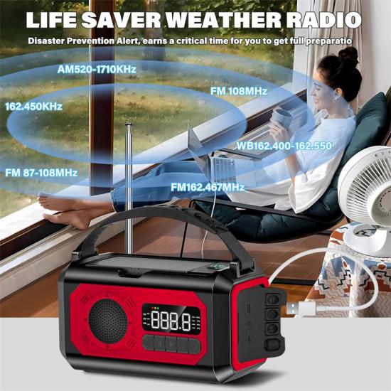 يستقبل جهاز راديو الاستجابة للطوارئ، الذي يزن 0.61 كجم، إشارات NOAA/AM/FM، بما في ذلك AM: 520-1710 كيلوهرتز، وFM: 87-108 ميجاهرتز، وWB: 162.4-162.55 ميجاهرتز. يتيح لك هذا الجهاز مواكبة أحدث معلومات الطقس والاستعداد للحماية.