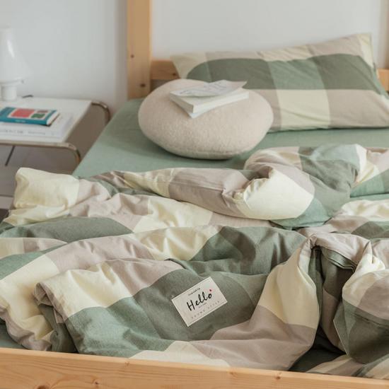 متوفر طقم غطاء لحاف ناعم قابل للتنفس من القطن المغسول، طقم فراش● 3 قطع: 1 غطاء وسادة وملاءة مسطحة وغطاء لحاف،