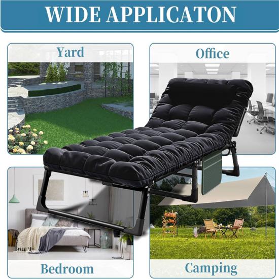 يناسب حجم السرير الكبير ١٩٠×٩٠ سم مختلف الأطوال وأنواع الجسم. تصميمه الفريد متعدد الاستخدامات يدعم أوضاع استخدام متنوعة، مثل الاستلقاء، أو الجلوس جزئيًا، أو القراءة، مما يوفر دعمًا مريحًا. يُطوى السرير ليصبح حجمه صغيرًا لسهولة الحمل والنقل، مما يجعله مثاليًا للنشر السريع.