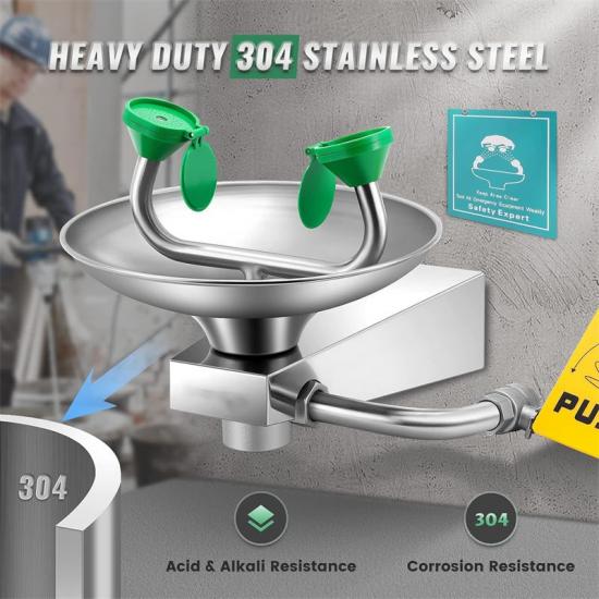 يتم تصنيع غسول العين الخاص بحوض الاستحمام الخاص بنا باستخدام مواد عالية الجودة لضمان متانة واستقرار غسول العين الخاص بالدش. المادة الرئيسية هي حوض بلاستيك ABS السميك، ممزوج بالفولاذ المقاوم للصدأ وطلاء مضاد للتآكل، مما يمكّنه من الحفاظ على أدائه حتى في ظل البيئة القاسية من الأحماض والقلويات القوية. تم تصميم فوهة غسل العين بشكل فريد مع 81 فتحة خروج لضمان تركيز عمود الماء وخلوه من الرش. بقطر حوض يبلغ 250 ملم، تم تصميم هذا الحوض الكبير لجمع المياه بكفاءة أكبر والحفاظ على نظافة الأرضيات.