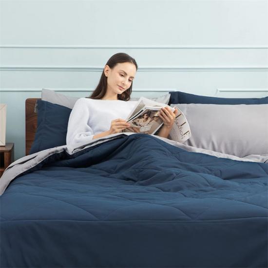 قماش ملاءة السرير المصنوع من الألياف الدقيقة والمُصنّع من قِبل حكومة الاحتياطيات مُبطّن، مما يزيد من نعومة وحجم طقم الفراش، ويزيد من متانته بشكل كبير. يضمن استخدام حشو الألياف الدقيقة توفير اللحاف للقدر المناسب من الدفء في مختلف الفصول، مما يتيح لك الاستمتاع بتجربة نوم دافئة حتى في ليالي الشتاء الباردة.