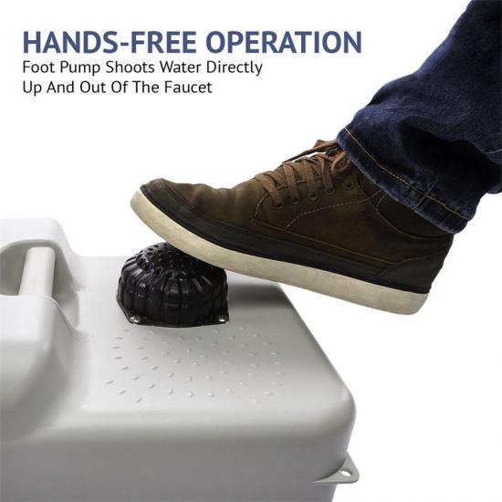 هذا الحوض الخارجي لغسل اليدين في حالات الطوارئ، المصنوع في الصين، مزود بحوض كبير وخزان مياه سعة 19 لترًا، ويتسع لأكثر من 100 غسلة بملء واحد. صُممت مضخة القدم لرش 180 مل من الماء العذب يدويًا عبر الصنبور دون الحاجة إلى استخدام اليدين، مما يجعله مريحًا وصحيًا، بالإضافة إلى كونه صديقًا للبيئة وموفرًا للطاقة.