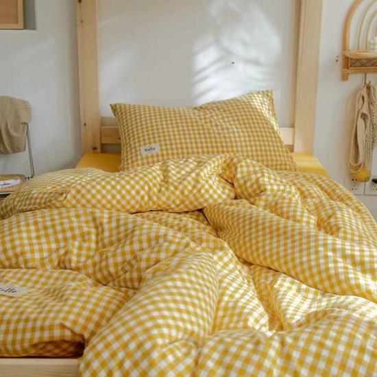 متوفر طقم غطاء لحاف ناعم قابل للتنفس من القطن المغسول، طقم فراش● 3 قطع: 1 غطاء وسادة وملاءة مسطحة وغطاء لحاف،