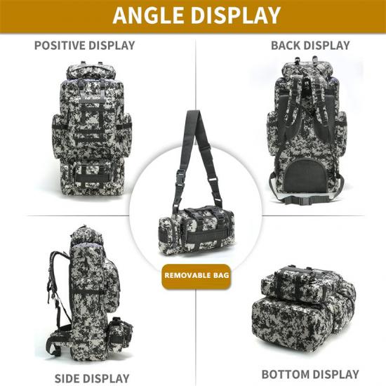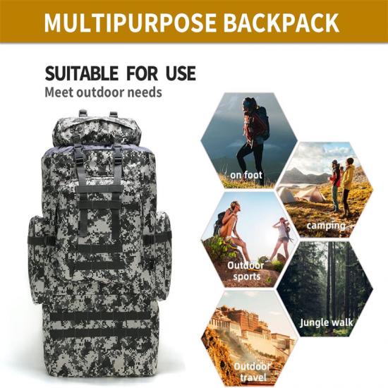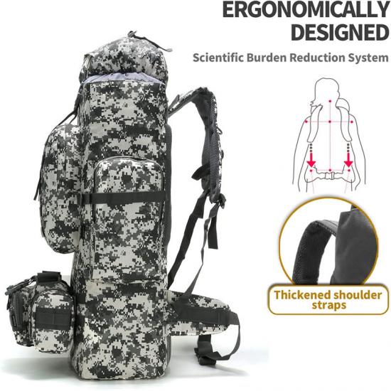 حقيبة الظهر هذه مصنوعة من قماش أكسفورد 900D المتين، مما يجعلها تتحمل الأحمال الثقيلة. بسعة 70 لترًا، تتسع لجميع أغراضك ومستلزماتك.