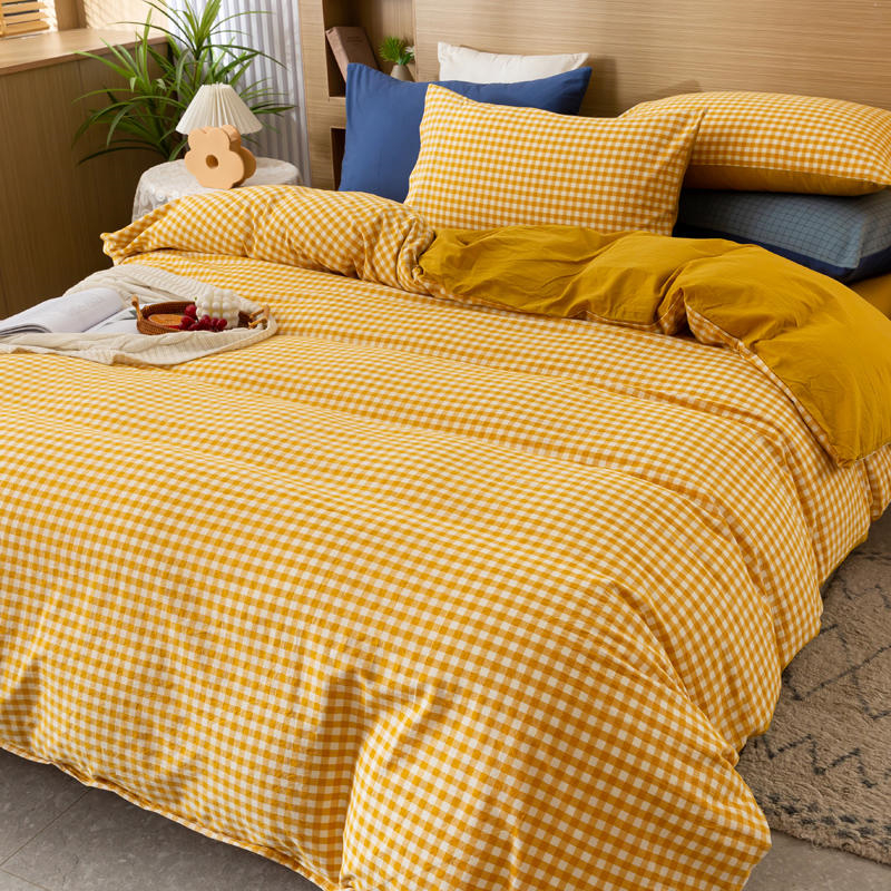 متوفر طقم غطاء لحاف ناعم قابل للتنفس من القطن المغسول، طقم فراش● 3 قطع: 1 غطاء وسادة وملاءة مسطحة وغطاء لحاف،