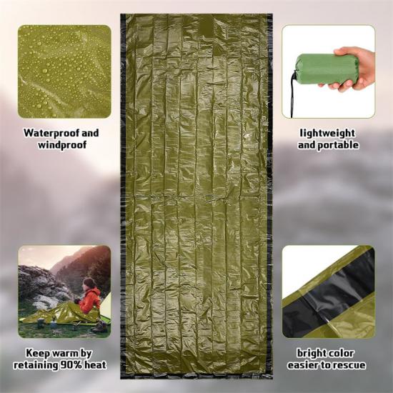 مواد عالية الجودة: كيس نوم للبقاء على قيد الحياة، مقاوم للتمزق، مصنوع من مواد متينة ومقاومة للتآكل، ليتحمل ظروف الاستخدام القاسية. يعزز الطلاء المقاوم للتمزق والثقب متانة المنتج ويمكّنه من تحمل مختلف البيئات القاسية.