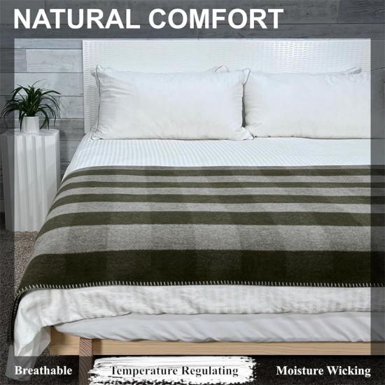 ثانيًا، تُضفي خصائص مقاومة الحرائق الطبيعية لهذه البطانية الصوفية القابلة للغسل في الغسالة، والتي تزن 1.8 كجم، ميزةً إضافيةً عند استخدامها في حالات التخزين. فالصوف مقاومٌ للحريق بطبيعته، وبفضل عملية تصنيعنا، توفر هذه البطانية الصوفية حمايةً أفضل في حالات الطوارئ.