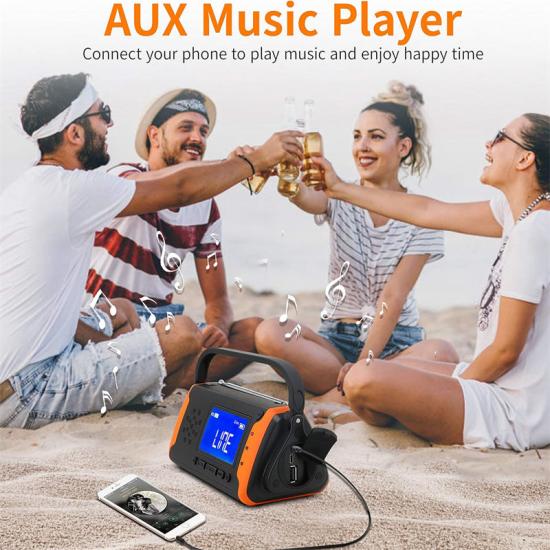 تم تجهيز جهاز الراديو الخفيف الوزن المصنوع في الصين أيضًا بمصباح يدوي وتحذير SOS ومشغل موسيقى AUX لتلبية احتياجاتك في المناسبات المختلفة.