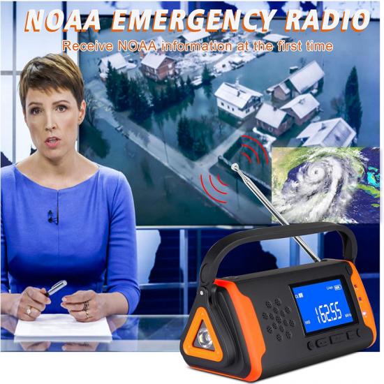 شاشة الكريستال السائل والإنذار: جهاز الراديو عالي الجودة من إنتاج الحكومة الصينية مزود بشاشة عرض LCD تعرض بوضوح معلومات الطاقة المتبقية ومستوى الصوت والقناة. بمجرد ورود معلومات عن الأحوال الجوية السيئة، سيصدر إنذار على الشاشة مع صوت واضح لضمان إعلامك من المرة الأولى.
