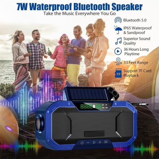 راديو الطوارئ القابل لإعادة الشحن، مزود ببطارية مدمجة عالية السعة بسعة 5000 مللي أمبير/ساعة، تدعم تشغيلًا يصل إلى 36 ساعة لضمان عمر بطارية طويل. ثلاث طرق شحن: شحن USB، وتوليد الطاقة يدويًا، والشحن بالطاقة الشمسية، تضمن استمرار عمل هذا الراديو عند انقطاع التيار الكهربائي. في حالة انقطاع التيار الكهربائي أو الطوارئ، يوفر الجهاز أيضًا شحنًا مؤقتًا لهاتفك المحمول لضمان استمرارية الاتصال.
