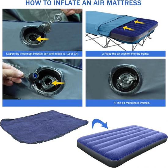 أ: مرتبة السرير القابلة للنفخ المحمولة لتوفير الراحة مصنوعة من مادة مرنة للغاية، والتي يمكن أن تتناسب بشكل وثيق مع منحنى الجسم وتوفر تجربة نوم مريحة.