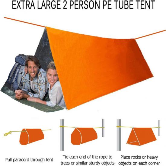 خيمة متينة وقوية مصنوعة من مادة البولي إيثيلين مزودة بنظام حبل نجاة. إنها خيار مثالي للطوارئ في الأنشطة الخارجية وحالات البقاء.