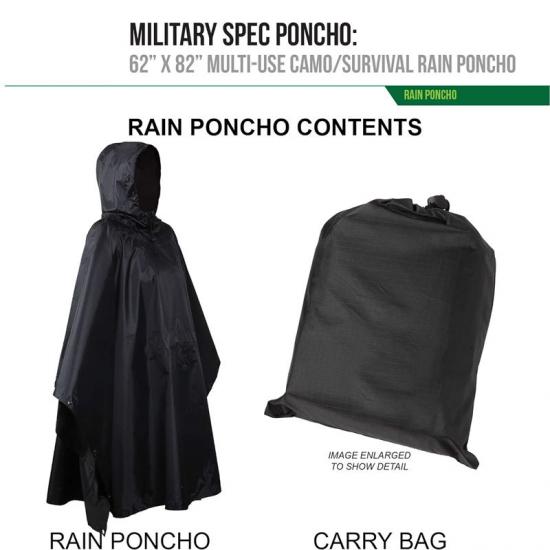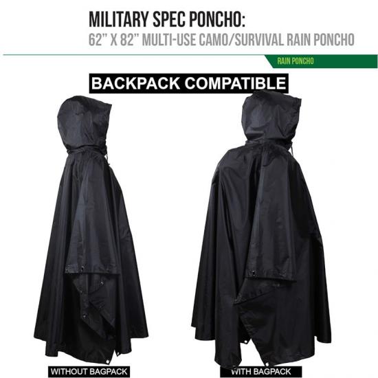 في الجيش، يُعدّ بونشو المطر المزود برباط خصر من المعدات المهمة. فهو لا يحمي من المطر فحسب، بل يوفر أيضًا حمايةً إضافيةً كمأوى. حجمه الكبير يتسع لحقائب ظهر أكبر ويوفر مساحةً إضافيةً للجنود.