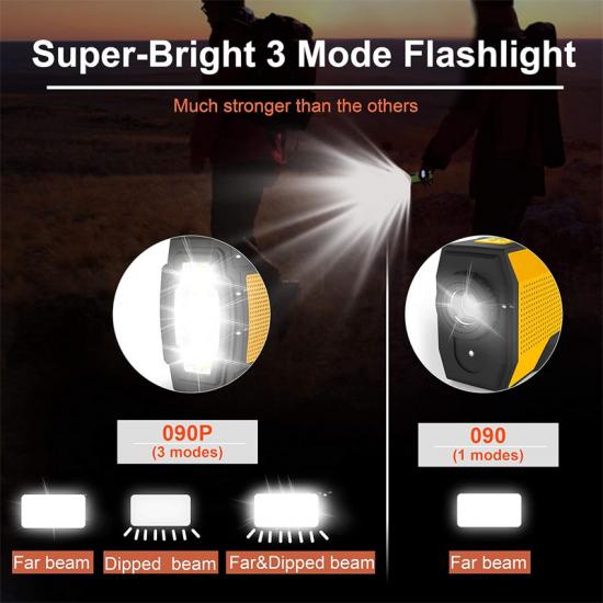 3 +2 وضع ضوء الطوارئ: جهاز راديو الإنقاذ المحمول مزود بمصباح يدوي فائق السطوع بثلاثة أوضاع إضاءة، بمدى إضاءة أقصى يزيد عن 10 أمتار، مما يوفر لك إضاءة ساطعة في الظلام. كما يحتوي على مصباح قراءة ثنائي الوضع مزود بمستشعر حركة، يمكن إيقاف تشغيله يدويًا وتلقائيًا لتوفير الطاقة.