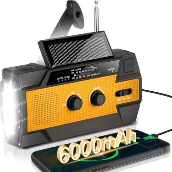 راديو مزود بمصباح يدوي ببطارية 2000 مللي أمبير في الساعة، ومفيد في حالات الكوارثالاستجابة. يُعد هذا الجهاز أداة قيّمة لتقديم المساعدة والدعم في المناطق المتضررة من الفيضانات.