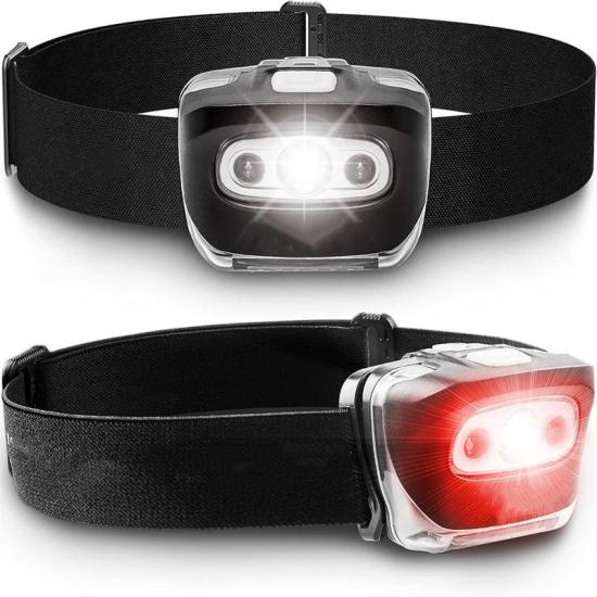 تقنية LED، 7 أوضاع، رأس دوار بزاوية 45 درجة، عصابة رأس قابلة للغسل والتعديل، ضوء أحمر، مقاومة للماء