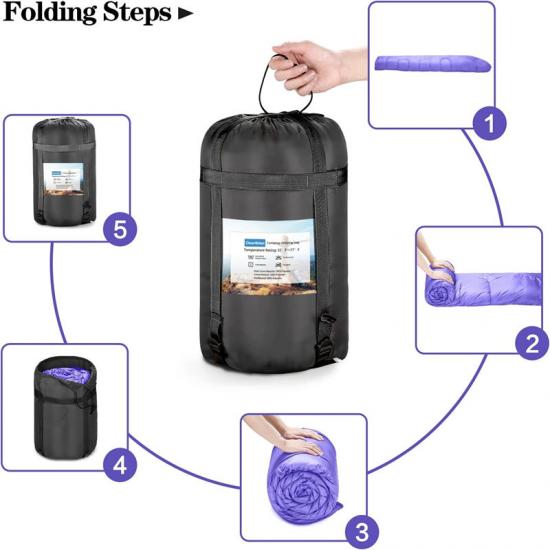 اشعر بالفرق - صُممت حقيبة النوم YRF فائقة الراحة وخفيفة الوزن للتخييم في الهواء الطلق لضمان نوم هانئ ومريح بعد يوم شاق من الرحلات أو المشي لمسافات طويلة أو السفر أو أي استكشاف آخر. تصميم التحكم في اللف يجعل الطي سريعًا وسهلاً، حيث يُمكنك ضغط كيسين معًا لمضاعفة مساحة الغرفة.