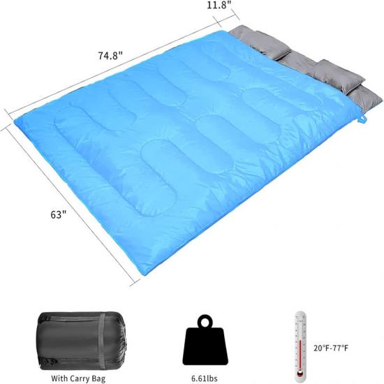تتميز حقيبة النوم المقاومة للماء هذه بحجم 63*86.6 بوصة / 160*230 سم بأداء جيد في العديد من الجوانب وهي مناسبة للإغاثة في حالات الطوارئ وغيرها من المشاهد. تتميز حقيبة النوم غير المكلفة بوظيفة مقاومة للماء ويمكنها منع الرطوبة والحفاظ على الدفء وهي مناسبة لاستخدام العديد من الأشخاص.