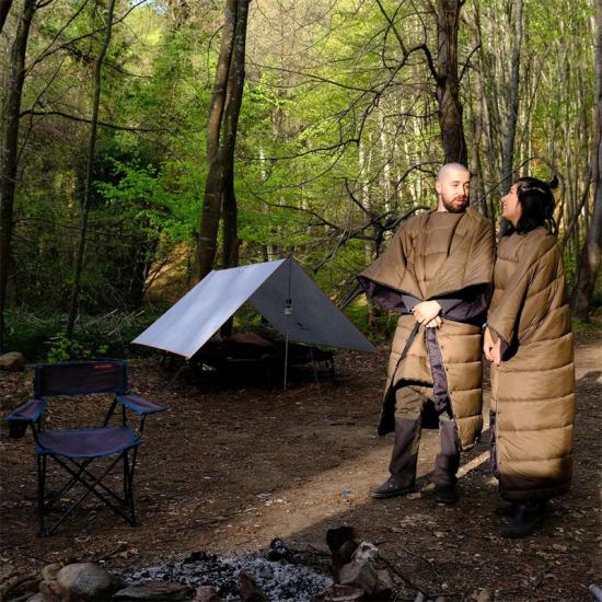 يمكن أيضًا استخدام اللحاف العلوي كحقيبة نوم بفضل وسائد القدم القابلة للتحويل التي توفر الدفء والراحة والكفاءة. يمكنك اختيار إبقاء وسادات القدم مفتوحة لمزيد من التهوية، في حين أن حبال الربط هي الأفضل للنوم البارد والطقس البارد. تعتبر هذه الميزة مهمة بشكل خاص في سيناريوهات الإغاثة من الكوارث الطارئة والإنقاذ في حالات الطوارئ، حيث تشكل القدمين جزءًا أساسيًا من الحفاظ على الدفء.