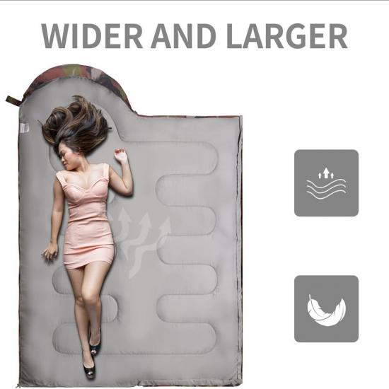 تصميم إنساني: تم تقسيم كيس النوم إلى تصميم سحاب الساق، وهو مناسب لتمديد قدميك ولا يخاف من الحرارة الخانقة. أو قم بسحبه لأعلى لتبقى دافئًا ومريحًا.