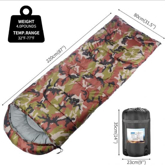 يبلغ مقاس كيس النوم المصمم مقاومًا للرطوبة 87 × 31.5 بوصة / 220 × 80 سم، وهو مناسب لمعظم البالغين. يوفر هذا الحجم مساحة كافية لضمان حصولك على قسط من الراحة بشكل مريح في الليالي الباردة. بفضل وزنها الخفيف الذي يبلغ 4 أرطال/1.8 كجم فقط، تعد حقيبة النوم خفيفة الوزن وسهلة الحمل، مما يجعلها مناسبة للانتشار السريع في حالات الطوارئ.