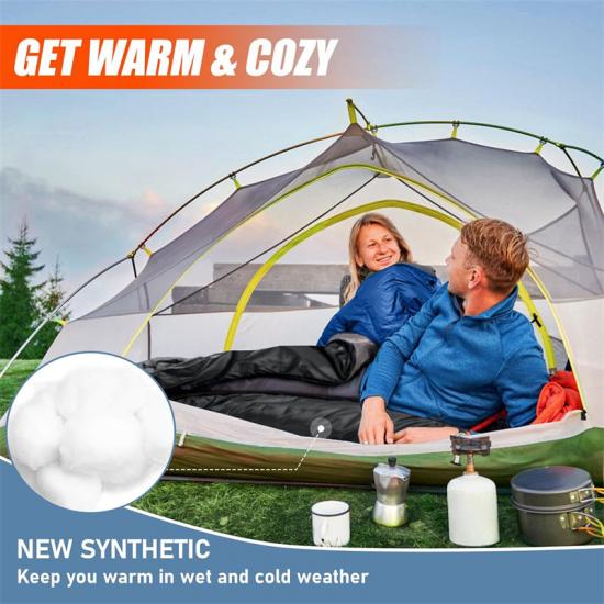أ: تستخدم حقيبة النوم المخصصة للإغاثة من الكوارث وسادة عازلة صناعية جديدة بالداخل للحفاظ على حقيبة النوم معزولة في الظروف الرطبة ومنعك من الشعور بالرطوبة.
