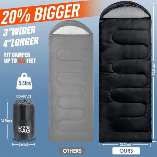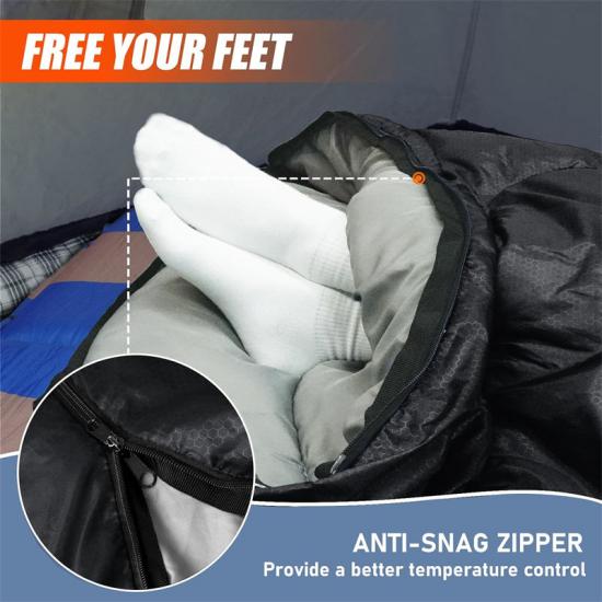 اشعر بالفرق - صُممت حقيبة النوم YRF فائقة الراحة وخفيفة الوزن للتخييم في الهواء الطلق لضمان نوم هانئ ومريح بعد يوم شاق من الرحلات أو المشي لمسافات طويلة أو السفر أو أي استكشاف آخر. تصميم التحكم في اللف يجعل الطي سريعًا وسهلاً، حيث يُمكنك ضغط كيسين معًا لمضاعفة مساحة الغرفة.