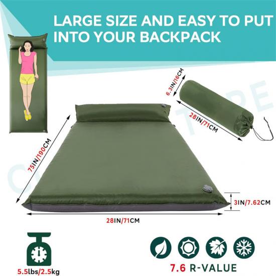 تأتي وسادة النوم القابلة للنفخ ذات الجودة الرخيصة للغاية أيضًا مع وسادة، والتي يمكن استخدامها بمفردها أو كقطعة