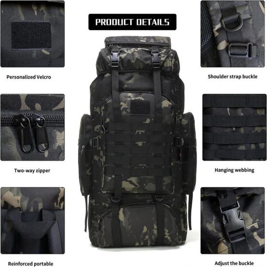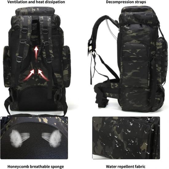 حقيبة الظهر هذه مصنوعة من قماش أكسفورد 900D المتين، مما يجعلها تتحمل الأحمال الثقيلة. بسعة 70 لترًا، تتسع لجميع أغراضك ومستلزماتك.