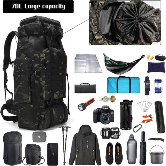 حقيبة ظهر 70 لترًا مع شبكة عريضة مقاومة للماء ومقاومة للتمزق في حالات الطوارئالتالي :