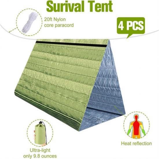 ستوفر لك مجموعة أدوات النجاة الخارجية لدينا أربع خيام متينة مصنوعة من مادة البولي إيثيلين. اللون الرئيسي أخضر زيتوني. وكل خيمة مُجهّزة بحبل نجاة. الخيام مصنوعة من مادة البولي إيثيلين عالية الجودة. وهي قوية ومتينة وقادرة على التعامل مع جميع أنواع البيئات القاسية. احتياجات.
