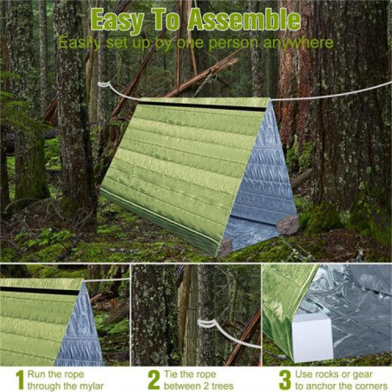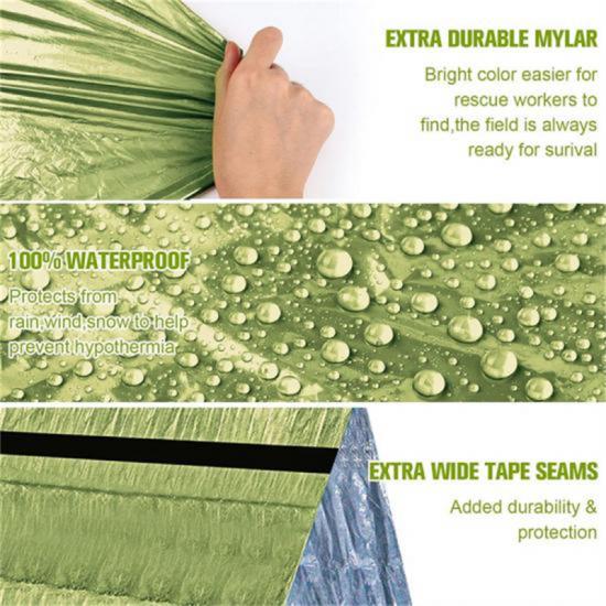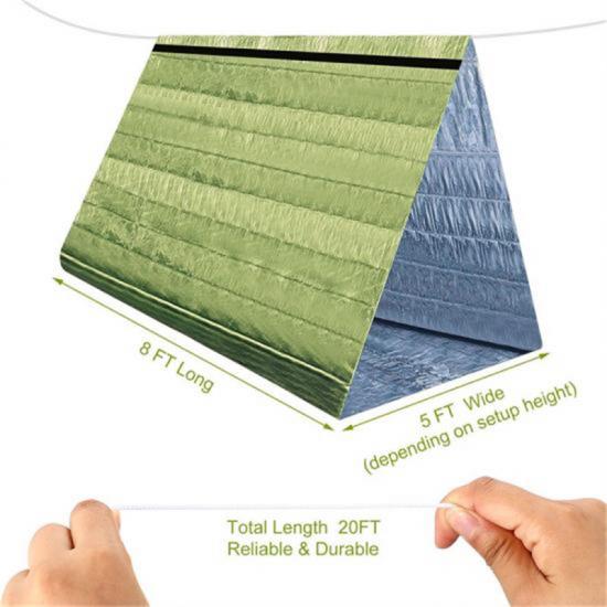 مصنوعة من مادة البولي إيثيلين عالية الجودة، خيمتنا الطارئة مناسبة للأنشطة الخارجية وخفيفة الوزن وقابلة للحمل.