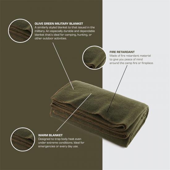 أ: بطانية الصوف ذات اللون الأخضر الزيتوني مقاس 66 بوصة × 90 بوصة مصنوعة من مادة مقاومة للهب عالية الجودة، مما يعني أنها توفر أمانًا إضافيًا في حالة الطوارئ.